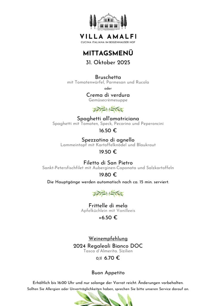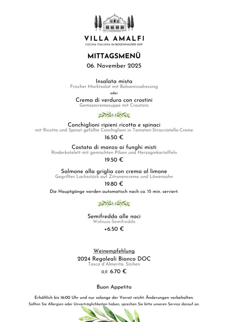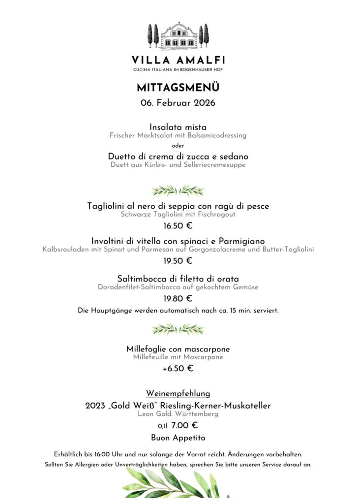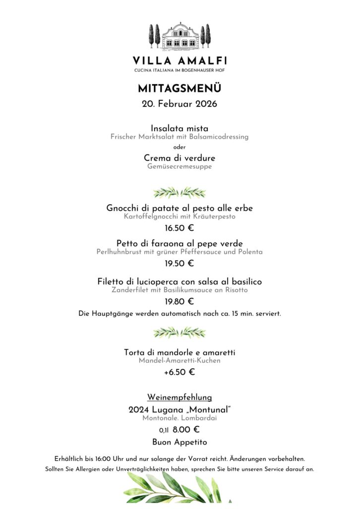 Von Montag bis Freitag (außer Feiertage) stellen wir für Sie tolle Gerichte als Mittagsmenü zusammen.